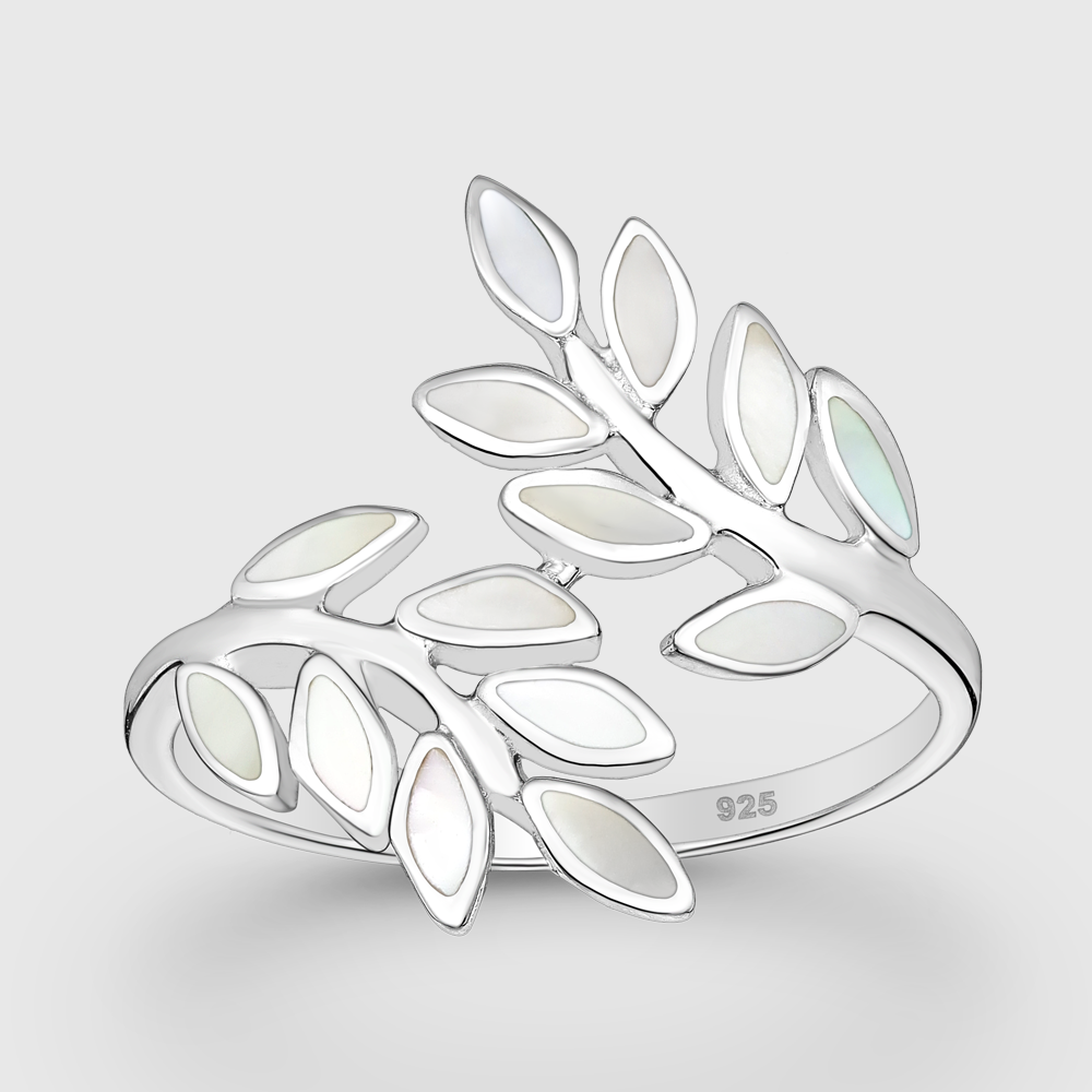 تألقي بإحساس ناعم وهادئ مع خاتم غصن السكينة المصنوع من فضة استرلينية 925. تصميمه المستوحى من غصن الزيتون، والمزين بصدف طبيعي، يرمز إلى السلام والجمال الطبيعي. قطعة فريدة تُكمل أناقتك وتعبّر عن ذوقكِ الهادئ.