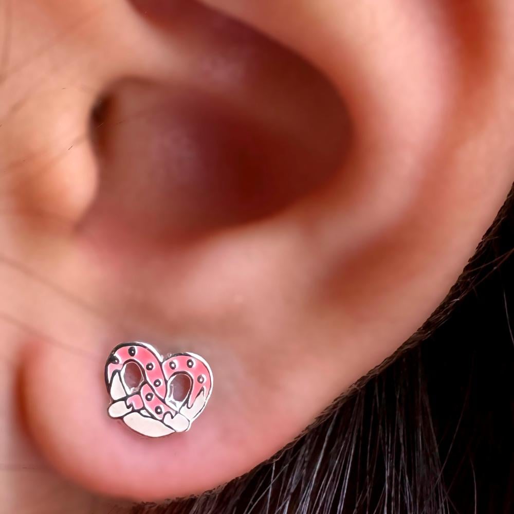 طقم أقراط مسمار فضية للبنات – بريتزل ومصاصة وآيس كريم