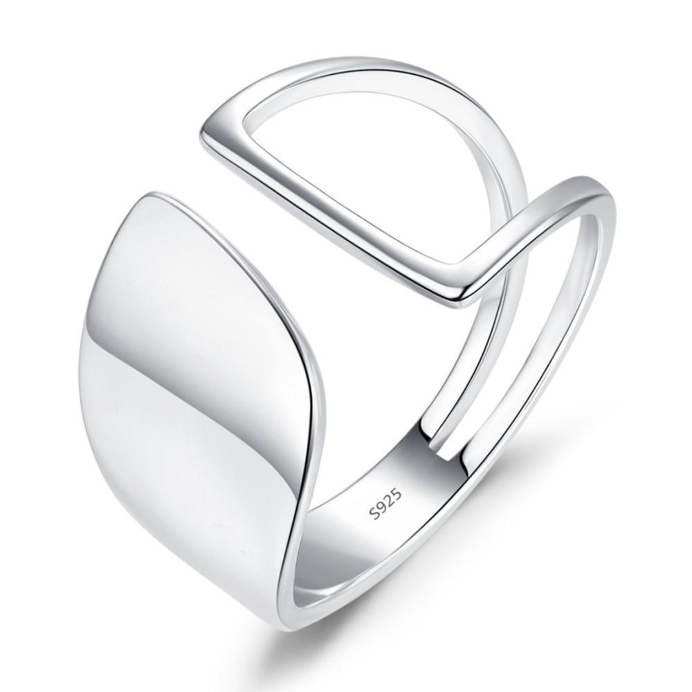 ✨ تألقي بأسلوب عصري وراقٍ مع هذا الخاتم الفضي البارز المصنوع من فضة إسترليني أصلية عيار 925، بتصميم هندسي مفتوح مستوحى من التوازن بين الحداثة والكلاسيكية.