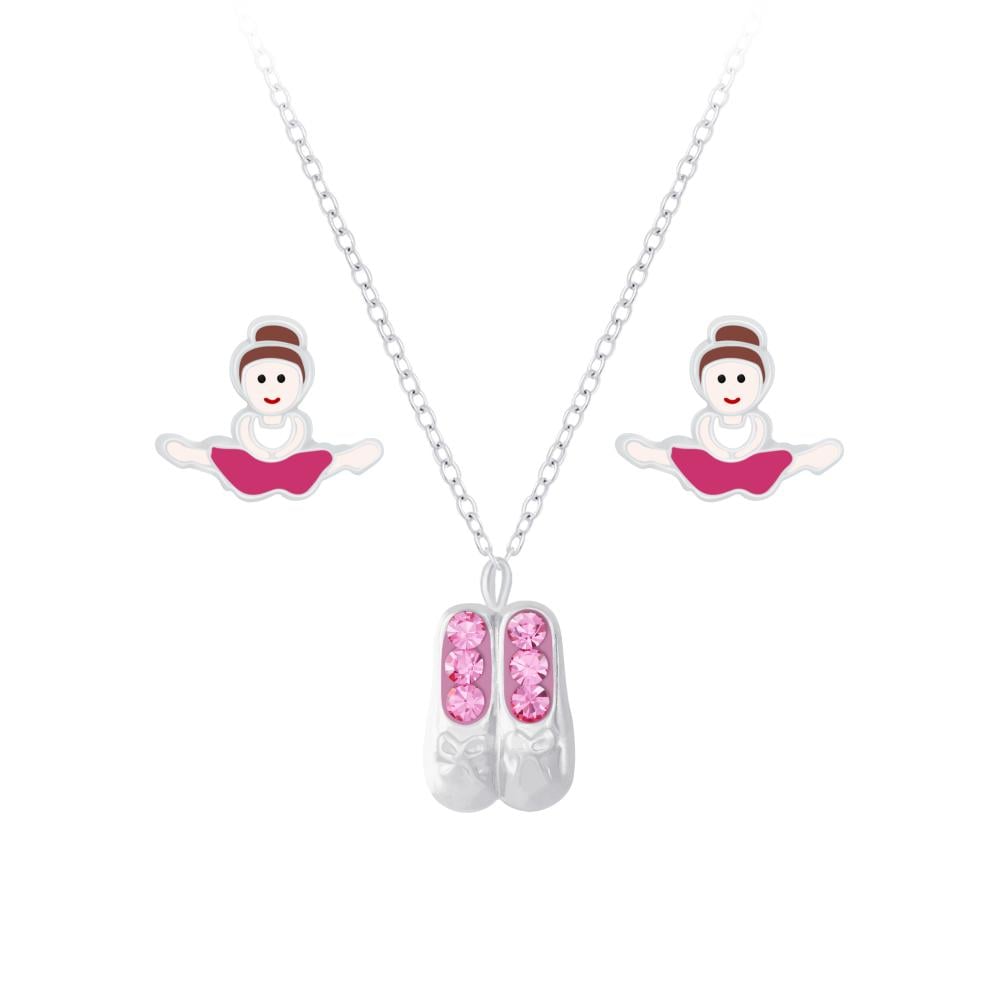 طقم مجوهرات راقصة الباليه من الفضة للبنات – قلادة حذاء باليه وأقراط راقصة