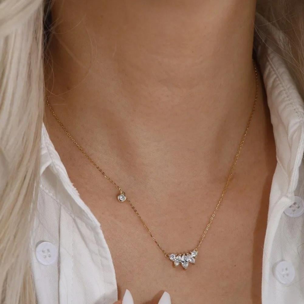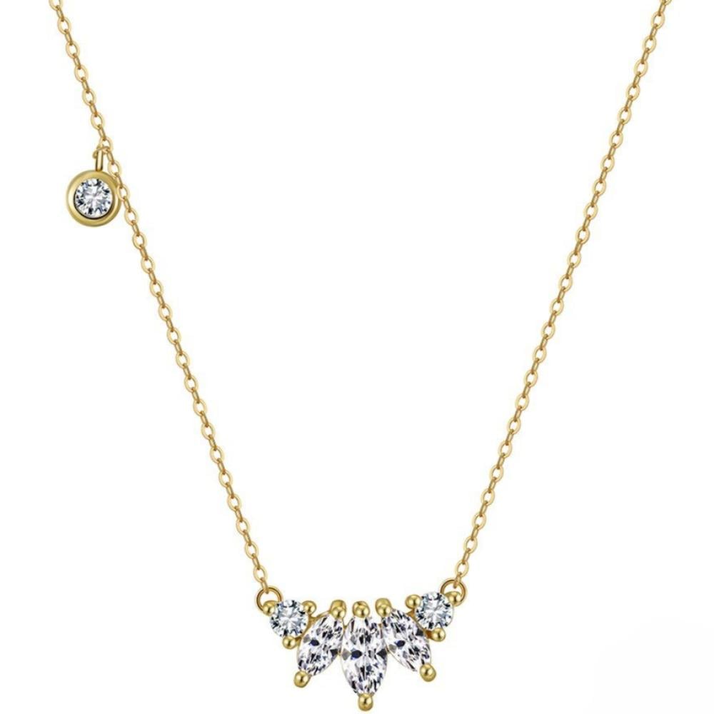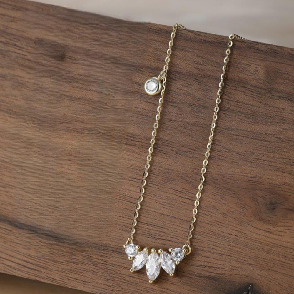 Add a refined sparkle to your look with this elegant marquise cluster necklace, crafted from S925 sterling silver and finished with luxurious 14K gold plating.