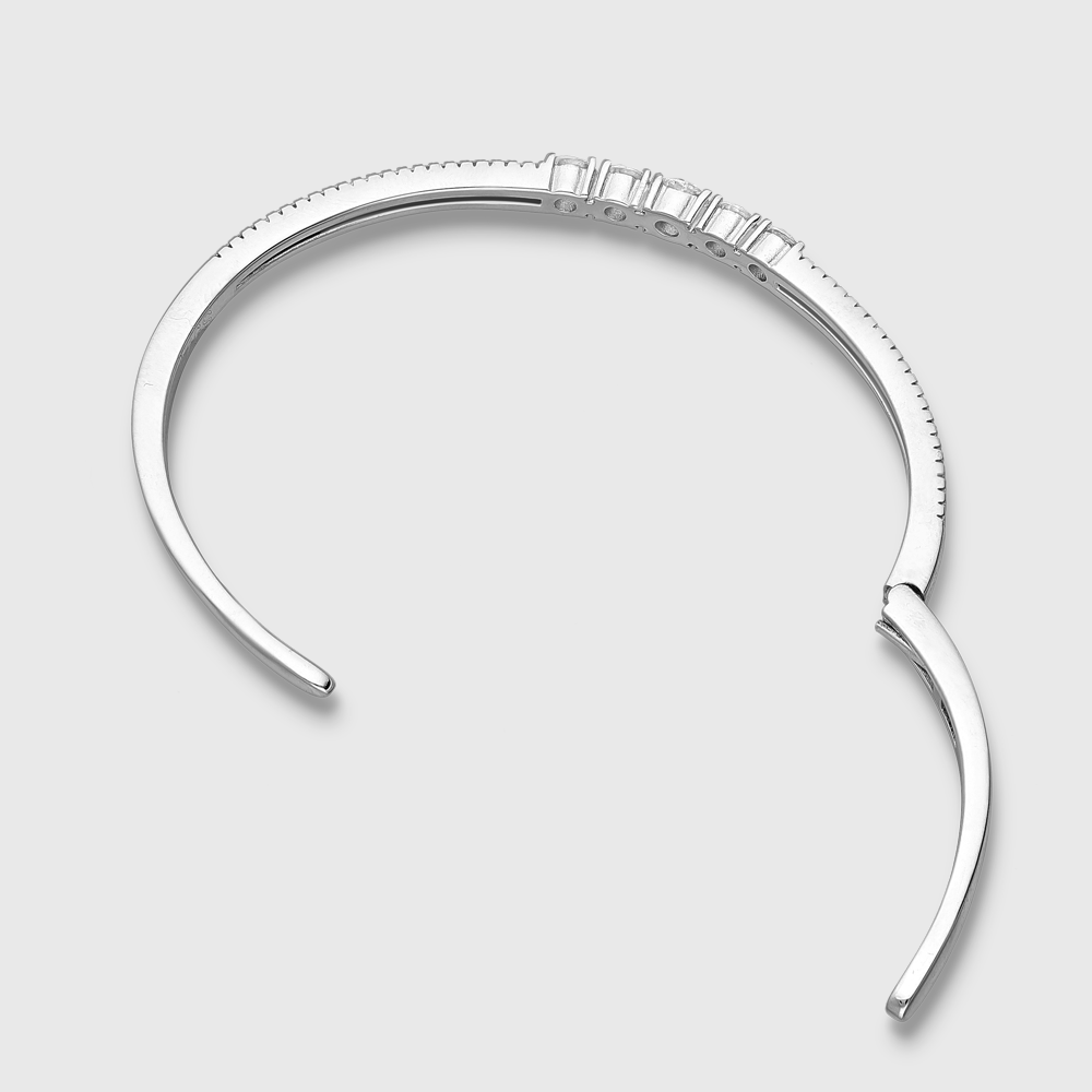 Silver Cuff Bracelet with Zircon 4.0 MM (925 Sterling Silver)